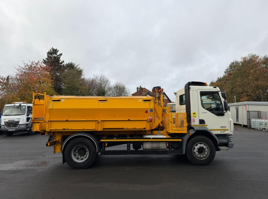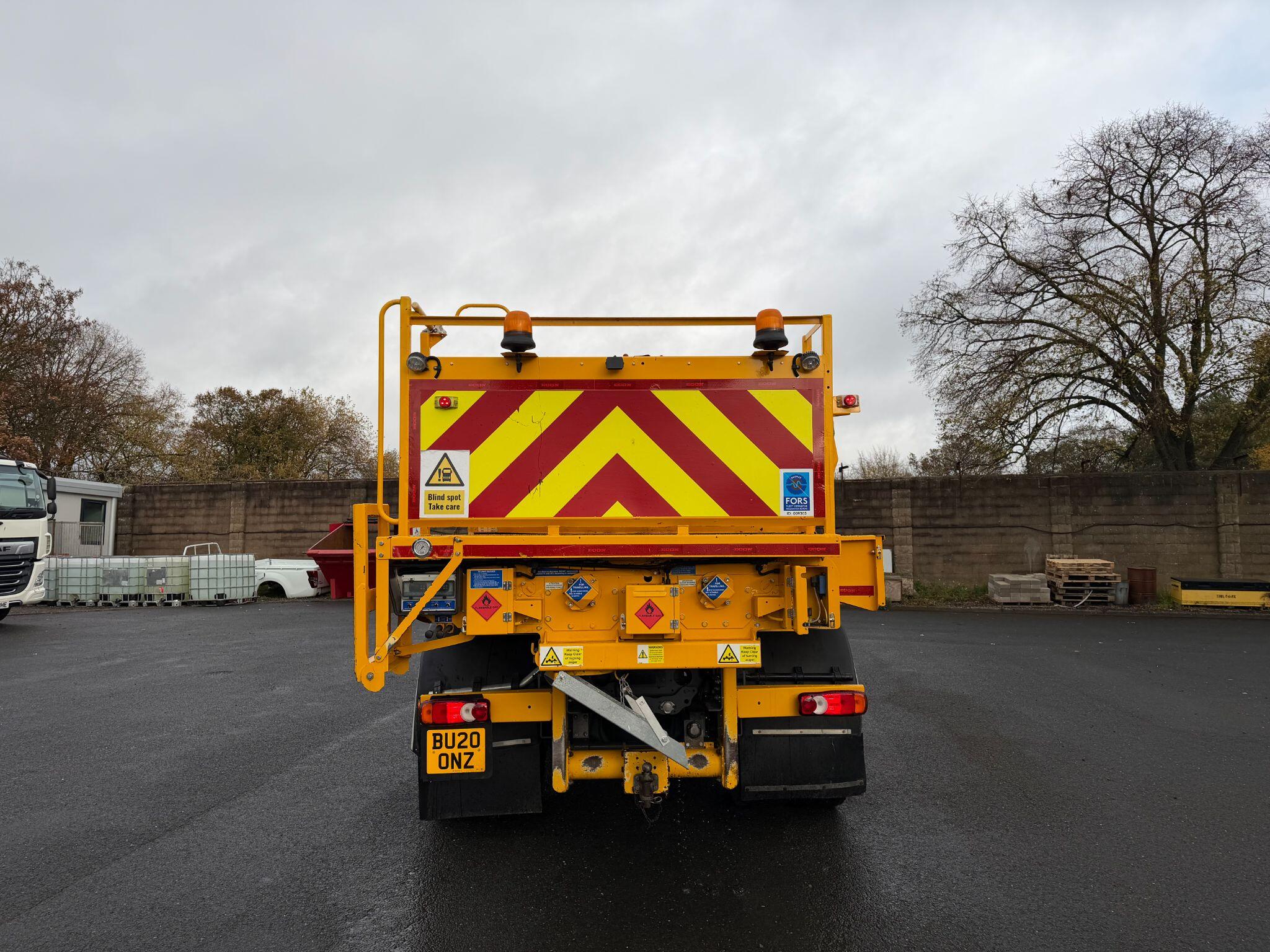60/40 split 5m³ Hotbox with twin auger Thermostatically controlled automatic gas heating system. Penny Hydraulics 125kg hoist. Drop side body with fall arrest and integral sign storage between cab and hot box body. Dedicated access point to body work including 3 points of contact. Safety interlocks to covers and lids. R65 beacon at rear of Hot Box and on roof of cab. Side panniers to n/s. Gas bottle storage with security gates. Tow bar and electrics. Chapter 8 compliant with rear highway maintenance sign and high visibility chevrons.